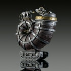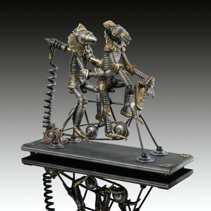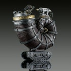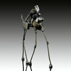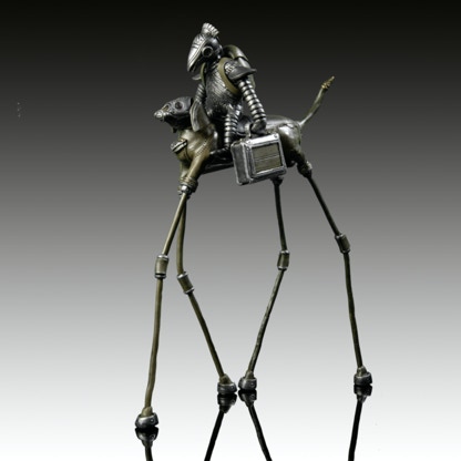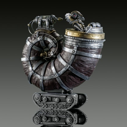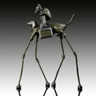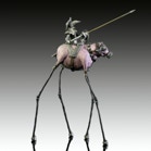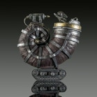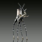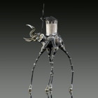 This war elephant gets its energy from a windmill attached to its back. The power of the wind is transferred to its modified locomotive system.