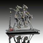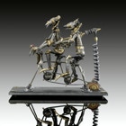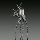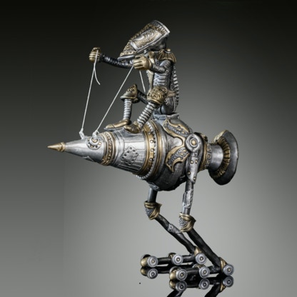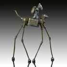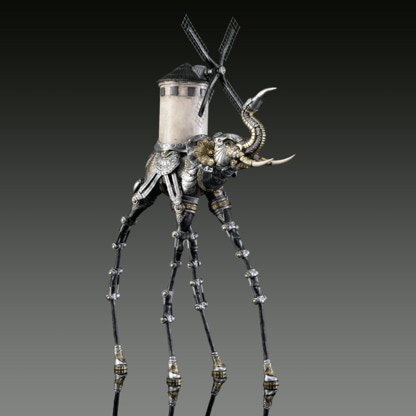 Dieser Kriegselefant erhält seine Energie durch eine auf seinem Rücken befestigte Windmühle. Die Kraft des Windes wird auf seinen modifizierten Bewegungsapparat übertragen.
